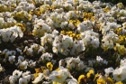 Ein weißes Kleid umhüllt den Blütenteppich schaurig stur