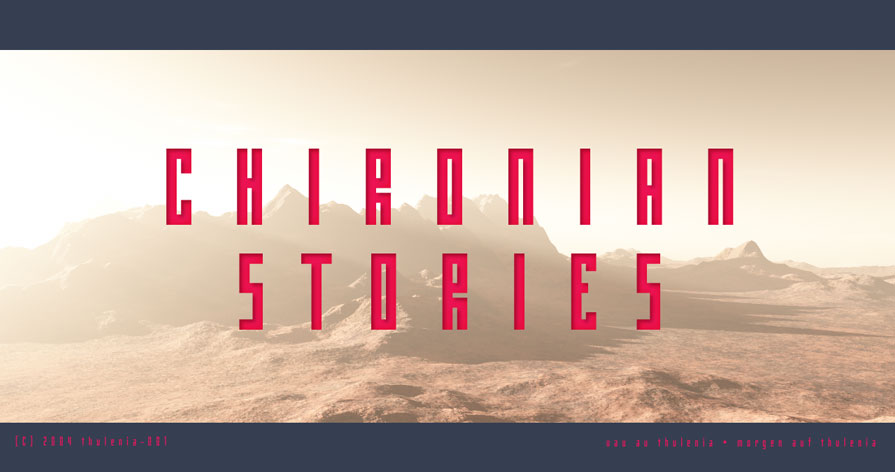 Vor weit mehr als 2 Jahren spielten etliche unverwegte Internetenthusiasten ein Online-Sci-Fi-Strategiespiel namens Galaxywars. Um dort besser voranzukommen, gründete man eine Allianz, die den Namen Chironian Forum bekam. Bald war es klar, dass die Allianz nicht nur ein reiner Zusammenschluss von Spielern sein sollte, sondern etwas mehr. Erste Ideen für Stories und Sagas entstanden. Eine ... weiter gehts unter: "Über mich".