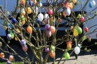 Mit Eiern behangen der Strauch.