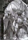 Bald darauf erschienen zwei Wachen, die Mukhtar mit festem Griff vor den Thron des Sultan führten, ihn vor seine Füße warfen und sich gleich darauf ständig buckelnd, rückwärts aus dem
