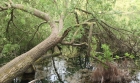 Ein Baum liegt entwurzelt im See