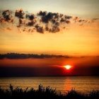 Manchmal erweckt der Abendhimmel die Gestalt eines Streuselkuchens, umlächelt von einem bronzenen Schleier, der als "Vorhang" über der blutroten Abendsonne sich erhebt. Der Vorhang des Tages fällt, wenn die Sonne