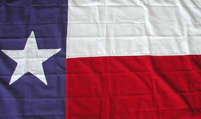 Er drehte sich um, wo gerade der Stern auf die texanische Flagge genäht wurde.