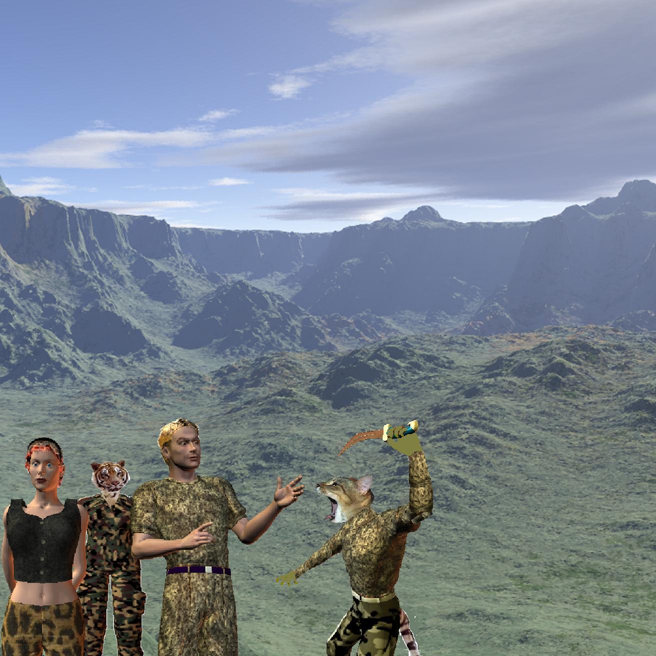 In ca. 10 m Entfernung von mir standen fünf Gestalten in Kampfanzügen mit gezückten Waffen. Ihre Gesichter lagen in Schatten, sie unterhielten sich in fauchenden und knurrenden Tönen und bewegten sich raubtierhaft geschmeidig bis sie mich eingekreist hatten. Auch sie schienen unsicher, ich war ihnen irgendwie vertraut aber andererseits hatte sie mein Verhalten offensichtlich irritiert. Als der eine sein Gesicht ins Licht drehte, bekam ich einen Schock.