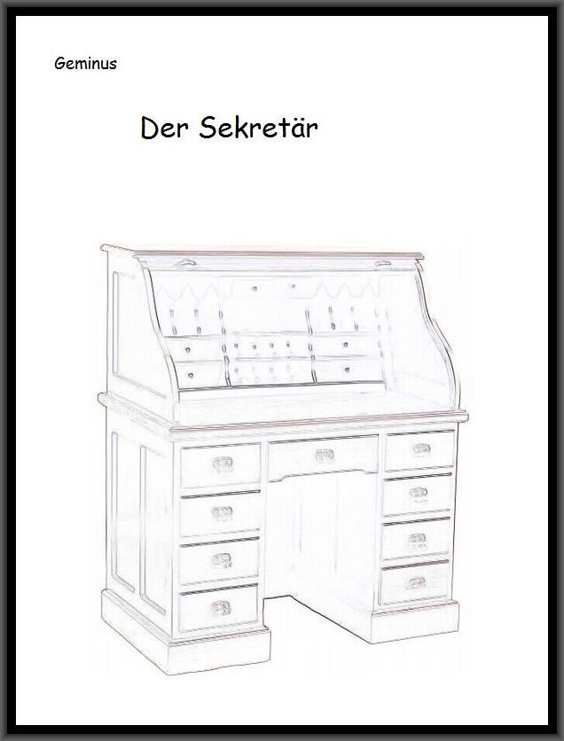 Kästner betrachtete liebevoll das vor ihm stehende Möbelstück. Seine raue, durch Lack und Lösungsmittel gegerbte Hand strich zärtlich über das rötlich schimmernde Rosenholzfurnier. Der Blick seiner grauen Augen wanderte bedächtig über schlanke Sparren hin zu den kunstvoll verzierten Schubladen und legten erst am leicht verkratzten Firmenschild aus gebürstetem Messing eine kurze Pause ein.
