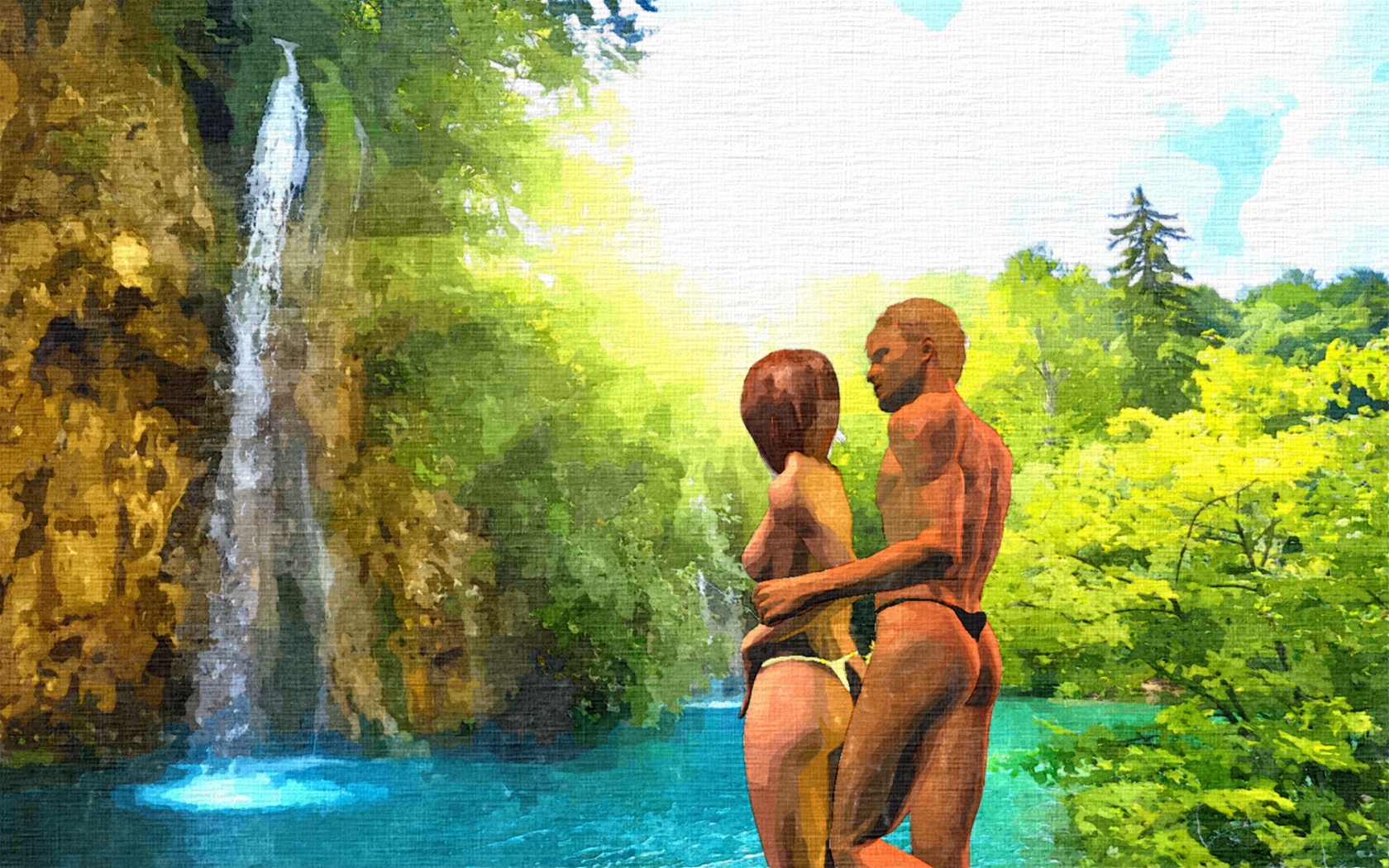 Mein Vater und Louisa hatten ihre Kleider schon abgelegt und sprangen nackt ins Wasser. Wir zögerten auch nicht mehr, streiften Hosen und Shirts ab und folgten ihnen.