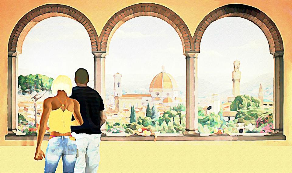 Meine Mutter und Tante Maria saßen vor einem kleinen Ristorante am Museum Bargello in Florenz.