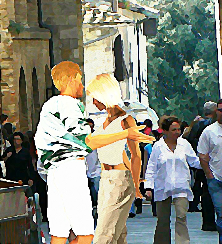 Nach der Kirche machte ein Fotograf auf der Treppe Fotos von allen und wir schlenderten langsam die Via San Giovanni hinunter. Bruno lud Benedetta und die Kinder ein, sowie die Eltern Marios, die nicht mehr so gut zu Fuß waren. Mario und Benedettas Eltern liefen mit uns zum Tre Archi.