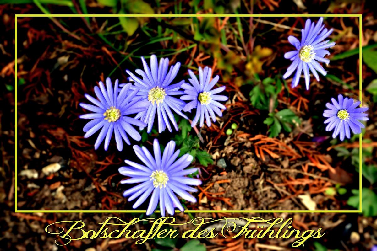 mit zarten, blauen Anemonen,