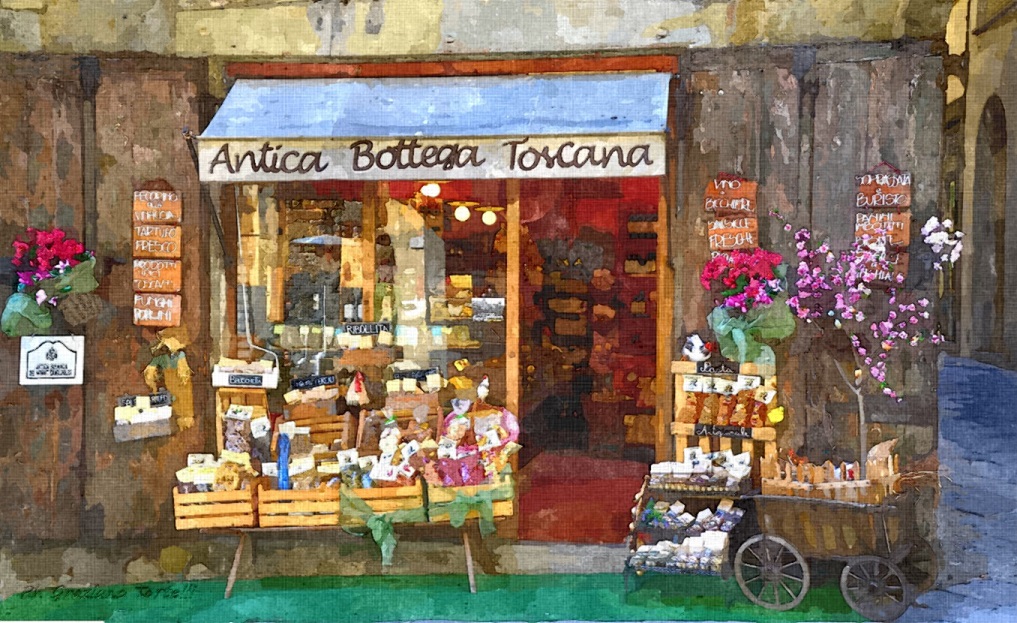 Wir bogen in Panzano von der Chiantigiana in eine Nebenstraße, die Via XX Luglio 11, fuhren an der Antica Maccelleria von Dario Cecchini vorbei und fanden eine paar Meter weiter einen Parkplatz. Nach kurzer Wartezeit waren wir dran. Bruno legte seine Einkaufsliste vor, während wir uns noch umsahen. Lena bekam von der Verkäuferin ein Schweinswürstchen zum probieren. Sie kaute mit vollen Backen.