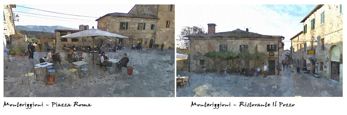 „Ich schlage vor, wir fahren jetzt nach Monteriggioni, das ist ein kleines mittelalterliches Dorf mit einer Ringmauer. Wir könnten im Il Pozzo an der Piazza Roma einkehren, die haben einen schönen, kleinen, schattigen Garten.“