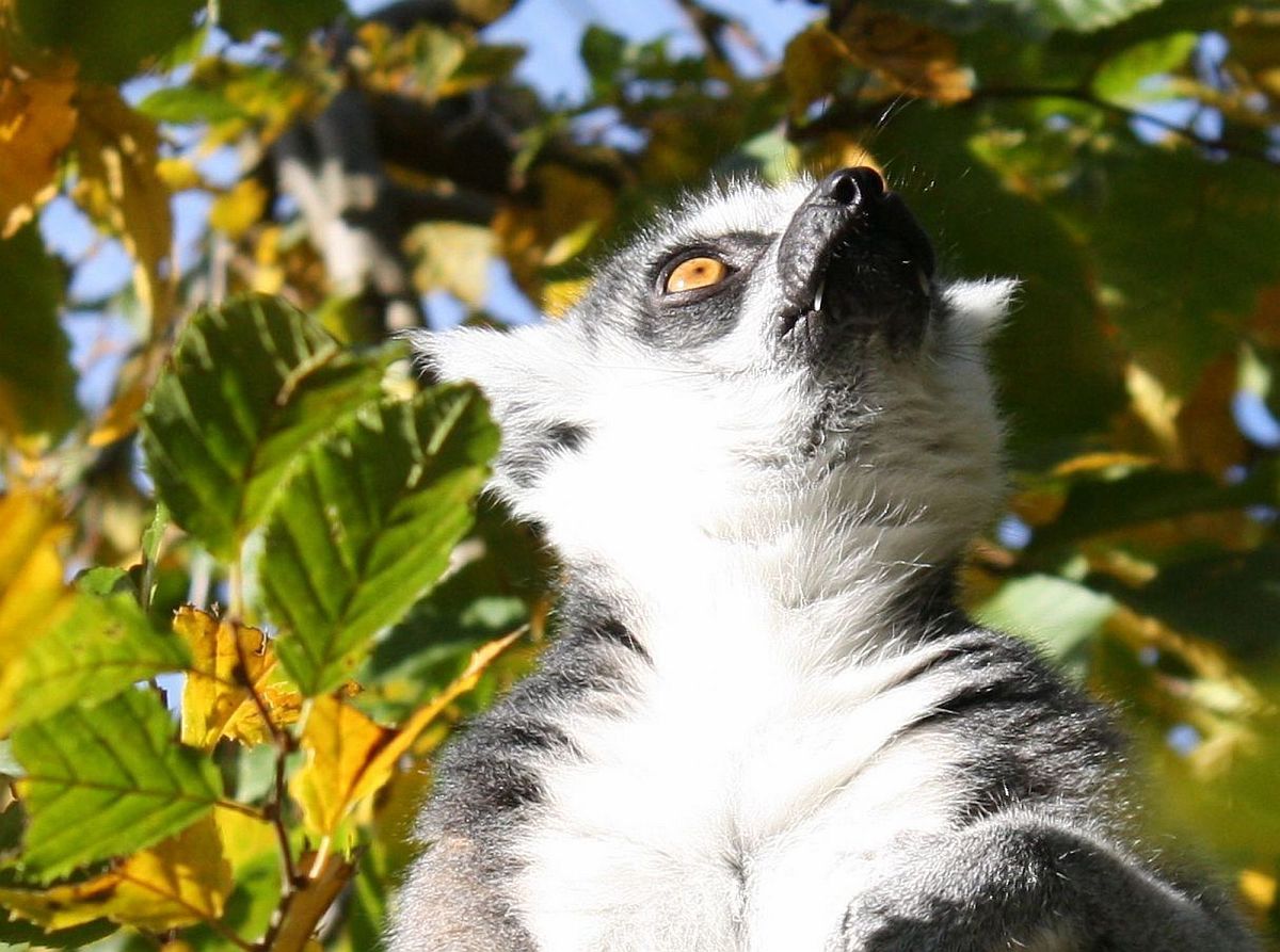 Dieses Tier ist ein Kata. Fotografiert im Vogelpark Marlow. Ich finde diese drolligen, affenartigen jedoch mit dichtem Plüschfell und einem sehr langen buschigen, gestreiften Schwanz ausgerüsteten Wesen einfach entzückend. Ihre riesengroßen Augen und vielen scharfen Zähne wirken gefährlich, dabei ist das Tierchen ausgesprochen friedfertig. Es futtert nur Obst. Weibchen dürfen hier die Führungsrolle übernehmen.